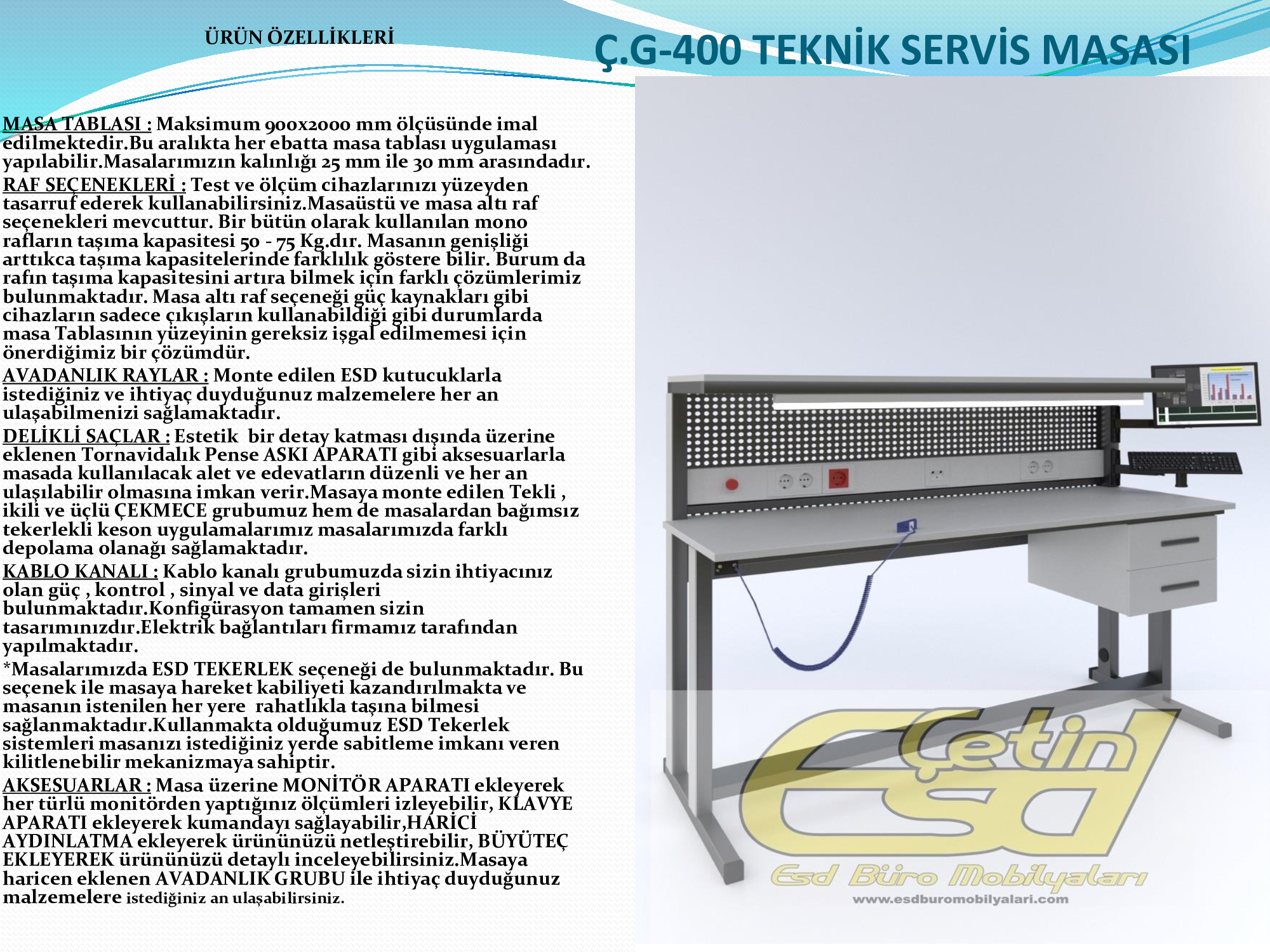 * Masalar ESD özelliksiz olarak da imal edilmektedir.