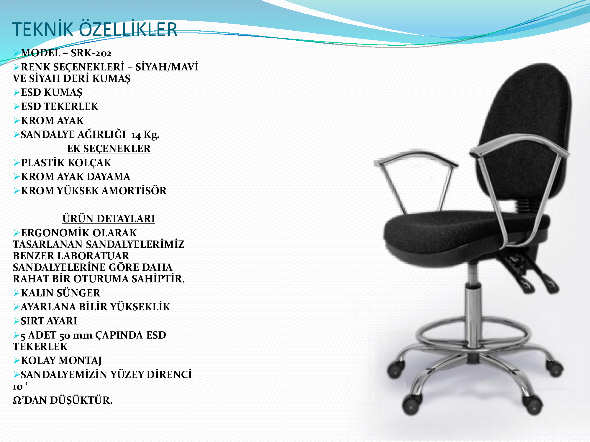ERGONOMİK OLARAK TASARLANAN SANDALYELERİMİZ BENZER LABORATUAR SANDALYELERİNE GÖRE DAHA RAHAT BİR OTURUMA SAHİPTİR.